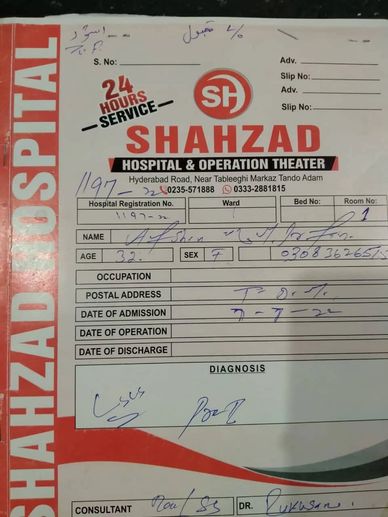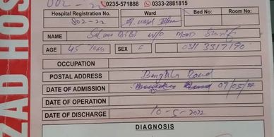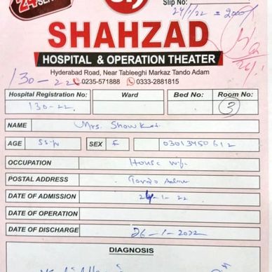 Nabeela comes from a low-income family. She lost her husband and relies upon her 19-year-old son, who works very hard in a thread factory. She had developed an abscess in her parotid region. Her abscess was drained and medical management was provided at no cost.